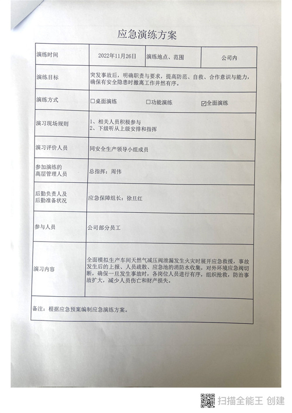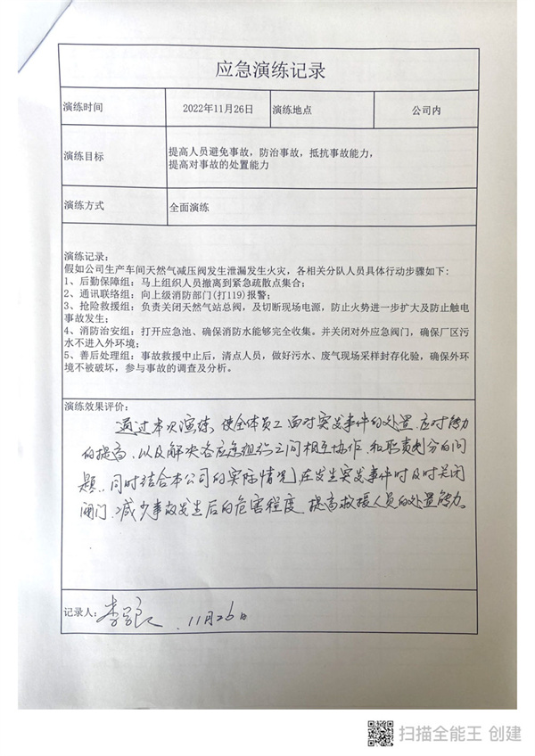 环境风险企业应急演练公示