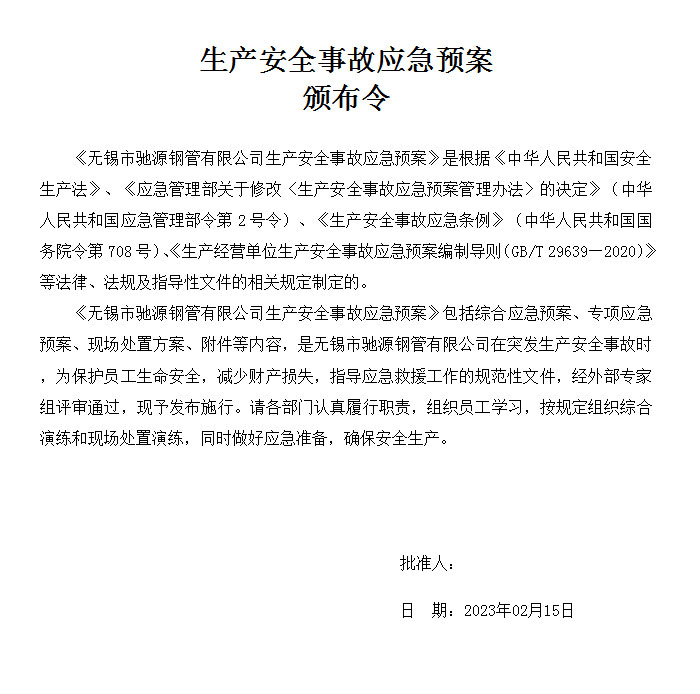 驰源钢管应急救援预案